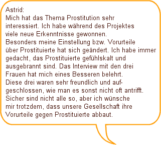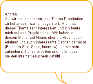 | Hallo Leute! Hier seid ihr im Projekt gelandet, in dem es um Prostitution geht. Wir hoffen, dass es euch gefällt und, dass für jeden etwas Interessantes dabei ist!