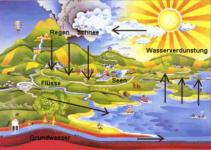 auf Flüsse, Seen und Wasser in der Atmosphäre.