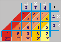Rechne 4 · 3 = 12, schreibe 2 in den Tausender-Streifen und 1 in den Zehntausender-Streifen.