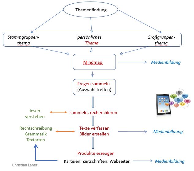 - kreative Gestaltung der Arbeiten (z.B. Zeitschrift, Karteien, Präsentationen)