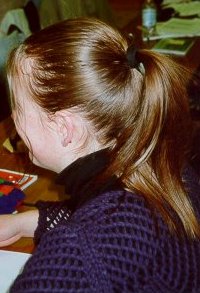 Einzelne Haarsträhnen heraus zupfen. (Man kann auch eine große