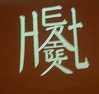 Xu Bing (*1955) kalligrafiert Zeichen(reihen), die aussehen als stammten sie aus der Tang-Dynastie. Chinesen stehen ratlos vor diesen Zeichen. Europäer können darin aber Namen erkennen.