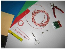 Für das Spiel werden Lampe und Batterie mit einem Draht verbunden. Jeweils ein weiteres Kabel führt von der Lampe und der Batterie weg.