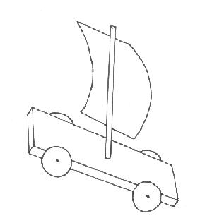 Bei einem "Windauto", einem Modell, das mit einem Segel versehen wurde, werden die Kinder argumentieren, dass der Wind das Fahrzeug "schiebt".