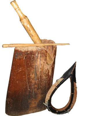Der Kummetbock besteht aus ein oder zwei hölzernen Böcken, die durch Keile oder Schraubvorrichtungen auseinander oder zusammengetrieben werden können. Hier wird das Kummet eingespannt und die Größe festgelegt.