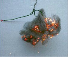 Stahlwolle und anderes Material (Papier, Holz...) wird auf einer feuerfesten Unterlage angezündet