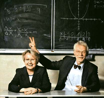 Die Bildungspolitiker Annette Schavan und Jürgen Zöllner vor einem "vermeintlich sinnvollen mathematischen Hintergrund" >>>.