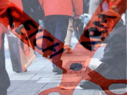 Die Bildkonstruktion zeigt, wie sich die Schere zwischen ARM und REICH in unserer Gesellschaft und in unseren Geschäftsstraßen öffnet.