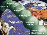 Viele entwicklungspolitisch denkende Menschen setzen bei einer Verbreitung des Wohlstandes auf Globalisierung. Sie erhoffen einen Trickle-Down-Effekt (ein Durchsickern) bei Arbeit, Bildung, Umwelt, Bevölkerung, Mädchen/Frauen, Sozial- und Siedlungswesen und zwar unterstützt durch eine Entwicklungshilfe aus den "reichen Ländern" auf unterschiedlichen Ebenen. Kann dies alles aber nebeneinander und miteinander gelingen? Erst recht, wenn jetzt auch in den "alten" Industriestaaten eine fehlende Fürsorge angemahnt wird.