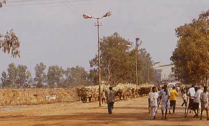 >> Indische Bauern mit ihrem Zuckerrohr vor einer Fabrik