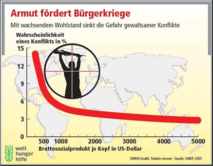 Die verschiedenen weltweiten Probleme hängen zusammen. In dem nebenstehenden Bild sind einige Faktoren aufgezeigt, die die Bereiche Armut, Hunger, Kinder- und Müttersterblichkeit wechselseitig beeinflussen.