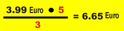 dann kosten 5kg fünf mal so viel, also mal 5 (5 auf den Bruchstrich)