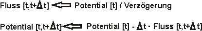 Die funktionale Beschreibung erfolgt in diskreten Zeitschritten mit Hilfe von Differenzengleichungen. Dabei erfolgt der Fluss zwischen Potentialen während eines Zeitintervall [t,t+∆t], und die Potentiale ändern entsprechend ihren Wert vom Zeitpunkt t zum Zeitpunkt t+∆t.