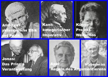 An den Ethik-Philosophien von Aristoteles, Kant, Küng, Jonas, Apel und Habermas sowie an einigen