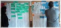 aufgestellt sein, auf denen jede/r Teilnehmer/in seine/ihre Karten festmacht