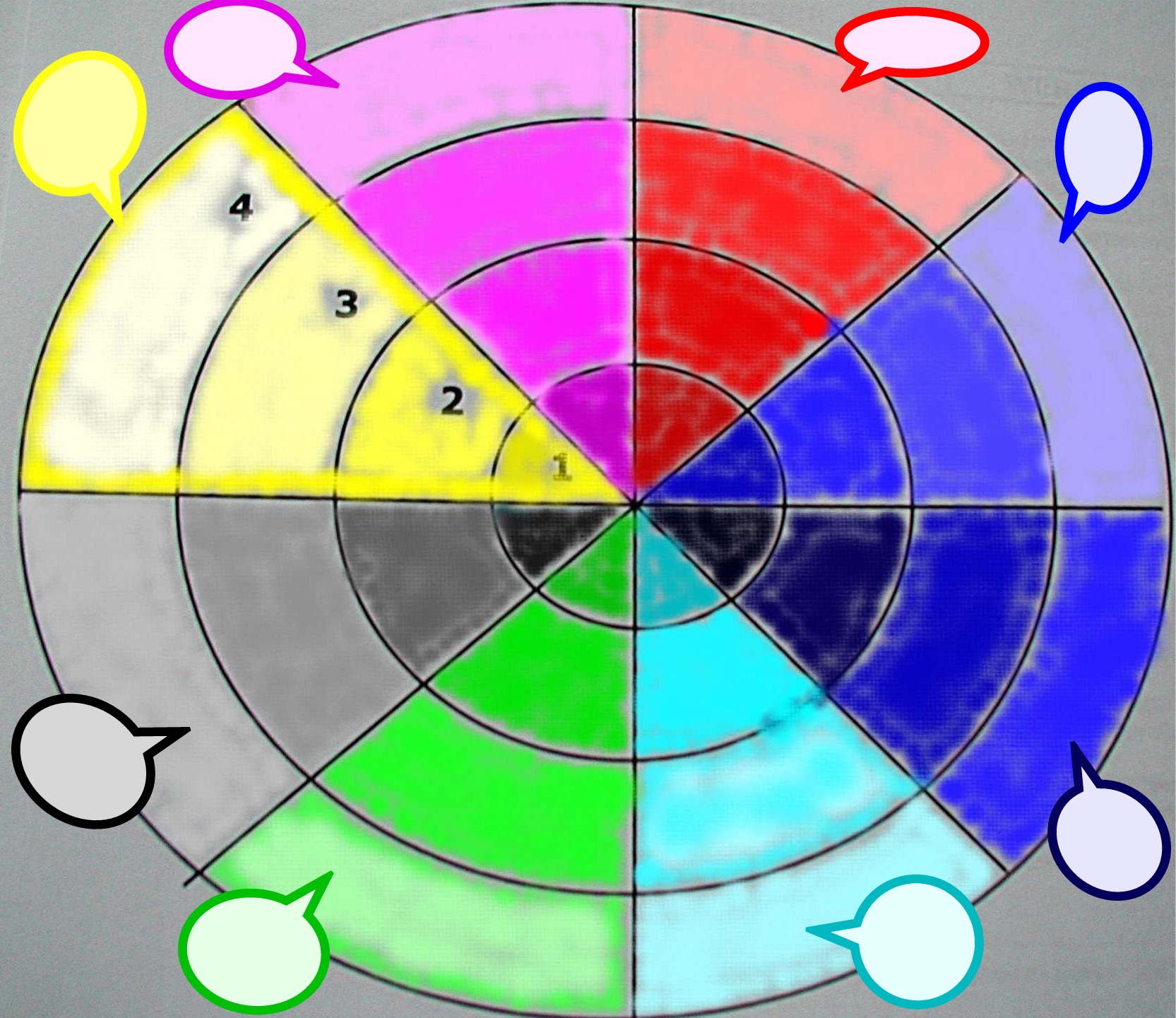 - Gliedern Sie den Kreis auch in vier konzentrische