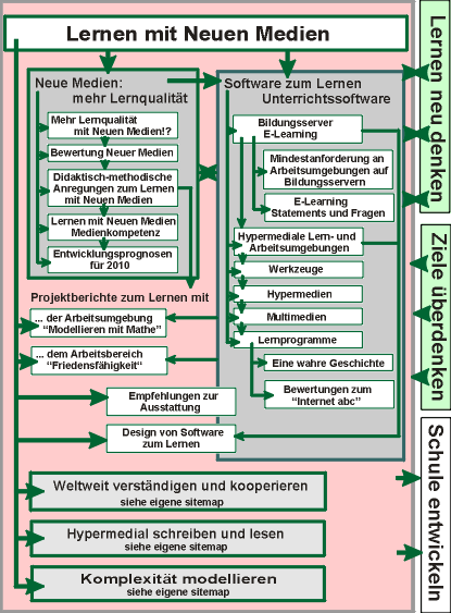 argumentativen Zusammenhänge in grafischer Form: Lerntheoretisch kann die nebenstehende Darstellung als eine "kognitive Landkarte" begriffen werden. Sie soll dabei helfen, selbstorganisiert den Leseweg zu finden und zu gehen, der den eigenen Interessen und Bedürfnissen entspricht. |