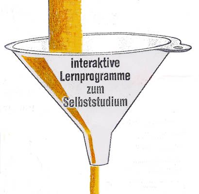 Die Trichtermethode der Informations- und Instruktionstheorie soll hier mit der nebenstehenden Karikatur zur Diskussion gestellt werden. Ist es richtig, dass wenn nur genügend Informationen auf das Gehirn eines anderen Menschen einstürmen, dann schon gelernt wird? Oder findet nur dann ein Lernprozeß statt, wenn das aufnehmende Gehirn konstruktiv tätig wird? Mit dieser Fragestellung wird nicht gesagt, dass zum Lernen keine Informationen notwendig wären. Sie sind es! |