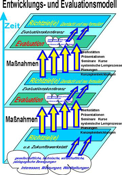 Die "weiße Wolke" in der Grafik soll andeuten, dass Veränderungen in den Außenbedingungen von Schule immer wieder auf Entwicklungsprozesse in der Schule einwirken. Das