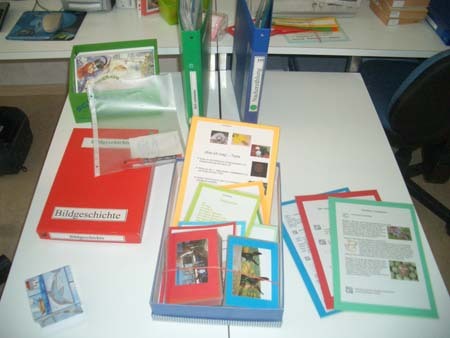 Die Mittelschule "Michael Pacher" war die erste Mittelschule in ganz Italien, die einen Klassenzug "Unterrricht mit Ausrichtung Montessori" eingerichtet hat. Da Maria Montessori ihre Unterrichtsmaterialien vor allem für Kinderhaus und Grundschule konzipiert hat und für die Jugendlichen im Alter unserer Sekundarstufen anderes vorgehabt hatte (siehe "Erdkinderplan"), gibt es kaum Originalmaterial. Wir haben in den letzten Jahren die Materialien für vorbereitete Umgebung, entsprechend den Materialprinzipien der M.M., erstellt und sind dabei, dieses Materialangebot zu ergänzen. Auf dem Bild kann man gut erkennen, was sich im Fach Deutsch so angesammelt hat. Regelmäßig finden Fortbildungsangebote statt und einige der Materialien kann man von unserer Schulhomepage herunterladen. Auch auf den Seiten des ASM findet ihr einiges.