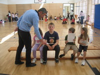 Unser erster Tag in der neuen Turnhalle - Spielefest Am 29. April 2010 durften wir endlich unsere neue Turnhalle benutzen. Die Lehrerinnen überraschten uns mit einem Spielefest. Auch der Herr Direktor war dabei. Wir machten lustige Spiele: Pieksluftballon, Tischtennisballpusten, Gesäßrutschen, Dosenwerfen, Teebeutelwerfen und Skateboardpaddeln. Zur Erinnerung haben uns die Lehrerinnen eine Bonbonmedaille gebastelt.   |