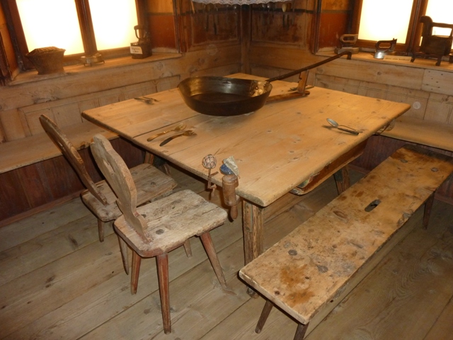 Auf dem Bild sieht man den Tisch, an dem früher gegessen wurde - ausgestellt im Heimatmuseum Steinegg |