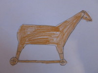 Die Griechen kämpften gegen die Trojaner 10 Jahre lang, bis eines Tages ein Grieche sagte, dass der Trojanische Krieg nicht so viele Opfer bringen dürfe. Daraufhin sagte Odysseus: „ Ja, lasst uns den Krieg beenden, aber mit einem Sieg." „Und wie sollen wir das machen?", riefen die Griechen. "Mit einer List!", antwortete Odysseus. Darauf bauten die Griechen das Trojanische Pferd. Es war so groß, dass 30 Krieger in seinem Bauch Platz hatten. Der Plan war, dass die Trojaner das Pferd in ihre Stadt bringen und damit die Krieger der Griechen hinter ihre Mauern lassen. Als das Pferd fertig war, stiegen Odysseus und seine Männer heimlich bei Nacht in den Bauch des Pferdes. Dann warteten sie. Als die Trojaner am Morgen auf das griechische Heerlager hinunterschauten, trauten sie ihren Augen nicht. Die Truppen waren abgezogen. Niemand war da, nur das Holzpferd. Alle wollten sofort das Pferd hereinholen, aber da trat Laokoon hervor. “Ihr Dummköpfe!”, rief Laokoon, “Traut niemals einem Griechen, auch wenn er Geschenke hinterlässt!” Ein paar begannen schon zu zweifeln, ob der Priester nicht doch Recht hätte, aber da krochen plötzlich zwei Schlangen aus dem Meer und erwürgten Laokoon. Da wussten die Trojaner, das ist ein Gottesurteil. So legten sie Rollen unter das Pferd und schoben es herein. “Ihr öffnet den Feinden die Tore!“, rief Kassandra, die Tochter des Königs Priamos. Die Trojaner waren aber so betrunken, dass sie nicht auf Kassandra hörten. So nahm das Unglück seinen Lauf. An diesem Tag feierte ganz Troja den Sieg über die Griechen. Überall wurde getrunken und gegessen bis spät in die Nacht. Und dann schliefen alle Trojaner tief und fest und keiner konnte sie mehr aufwecken. Da war der Moment gekommen, Odysseus und seine Männer stiegen aus dem Bauch des Pferdes. Sie öffneten den anderen Griechen die Tore. Alle stürmten in die Stadt und es wurde grausam gekämpft, viele Menschen starben, am Ende auch König Priamos. So war der Krieg gewonnen und die Griechen zogen als Sieger nach Hause. Quelle: Rudolf Herfurtner, Annette Betz: Das Trojanische Pferd, 2008 Autor: Thomas Wierer |