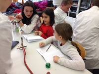 Evelyn und Victoria beim Experiment mit dem Gasbrenner |