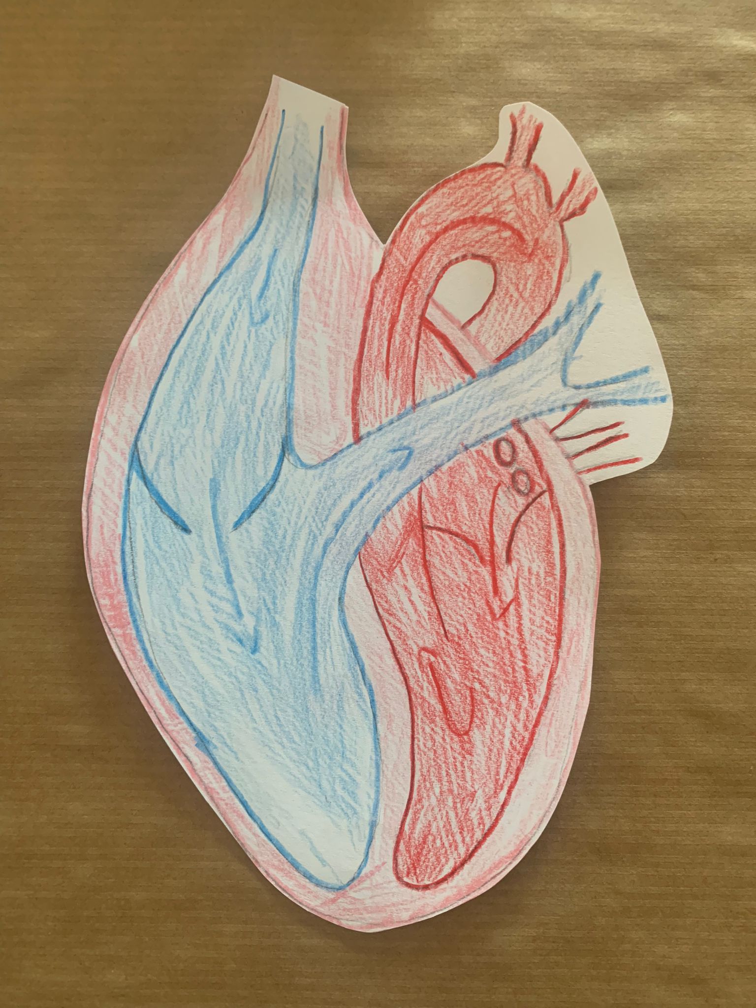 Das blaue ist das Blut mit Sauerstoff und das rote das Blut ohne Sauerstoff. Und das pinke ist der Muskel der alles verteilt. |