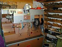 Maschine. An der Ausputzmaschine sind mehrere Räder mit Schmirgelpapier