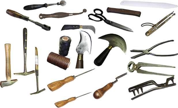 Einige Sattlerwerkzeuge sind typisch für den Beruf, der mit Lerderverarbeitung zu tun hat.