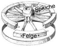 Für jede Felge sind zwei Speichen vorgesehen. Die Speichen haben rechteckige Nabenzapfen und runde Zapfen.