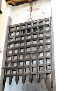 Das große Eingangstor besaß zur Sicherheit ein Fallgitter aus Eisen.