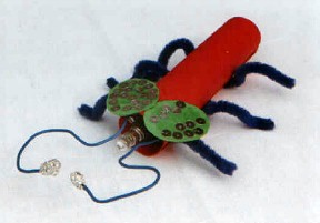Als Stromquelle dienen zwei hintereinander angeordnete 1,5V-Batterien. Ein Leitungsdraht wird mit einem Pol einer Batterie verbunden. Das andere Ende dieses Drahtes bildet einen Fühler des Käfers. Der freie Pol der anderen Batterie wird mit der Glühlampen-fassung verbunden. Ein weiterer, von der Glühlampenfassung ausgehender Leitungsdraht, bildet mit seinem freien Ende den zweiten Fühler.