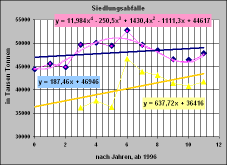 | Jahren | insgesamt | gefährlich | nicht gefährlich | Haushaltsabfälle | insgesamt | gefährlich | nicht gefährlich | ||||||
