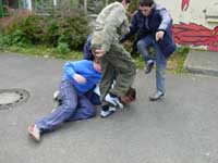 - Diskutiert in eurer Kleingruppe, ob sich das Risiko der Entstehung von Jugendgewalt dann drastisch erhöht, wenn mindestens zwei der folgenden drei Faktoren zusammentreffen: (a) die Erfahrung innerfamiliärer Gewalt, (b) gravierende soziale Benachteiligung der Familie und (c) schlechte Zukunftschancen aufgrund eines niedrigen Bildungsniveaus. Nutzt dabei die Modelle zur Analyse von Gewalt