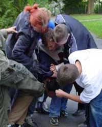 - Beachtet dabei, dass der Beobachtungsbogen Merkmale enthält, die im Verlauf der Gewalthandlung auch beobachtet werden können, etwa: Veränderungen der Gesichtsfarbe, Körperhaltungen (Fußstellungen, Armhaltungen, Verkrampfungen der Hände), verbale Gefühlsausdrücke, kurze Attacken, Anfangs-Tätlichkeiten, Eingriffe von anderen, Pausen im Geschehen, heimliche erneute Angriffe und die Steigerung der Tätlichkeiten .....
