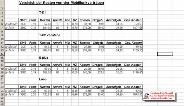 Bei den weiteren Überlegungen reduzierte die Gruppe dann den Handygebrauch im Monat auf 300 SMS und acht Telefongespräche, verlagerte dabei aber ihr Hauptaugenmerk auf den Vergleich der Kosten bei vier ausgewählten Mobilfunkunternehmen.