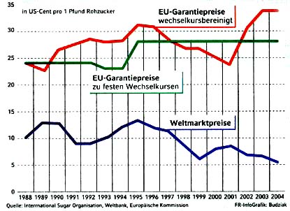 Besonders ärgerlich für Nichteuropäer ist aber: Damit die europäischen Zuckerexporte auf dem Weltmarkt Abnehmer finden, werden sie von der EU subventioniert. ... Nur langsam und in fernen Zeiten sind Änderungen geplant! ... |