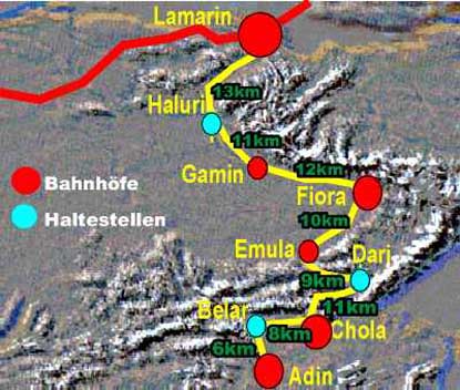 2. Die Angaben zur Entfernung zwischen den Bahnhöfen und Haltestellen sind der Streckenskizze zu entnehmen.