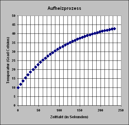 Beschreibt ein Flussdiagramm für ein Aufheizmodell, das schließlich die Verhältnisse so zeigt, wie sie in der Versuchsreihe beschrieben sind.