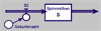 für ein gleichförmiges Wachstum mit der Zustandsgröße "Spinnmilben", der Flussgröße Spinnmilben_Zunahme und dem Parameter Geburtenzahl.