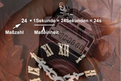 Die anderen sind: Länge, Masse, elektrische Stromstärke, Temperatur, Stoffmenge und Lichtstärke. Früher und auch heute noch wird im alltäglichen Leben die Zeit nach dem Lauf der Erde um die Sonne als ein Jahr (1a) bestimmt. Die Erde wird in (15 Grad breite) Zeitzonen eingeteilt, die jeweils einen Zeitunterschied von jeweils 1 Stunde (1h) haben.