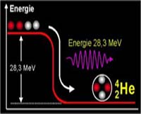 In der Sonne entsteht aus Protonen und Neutronen Helium. Hier ist die Masse-Summe der Einzelprodukte größer als die Masse des Heliums. D.h. beim Aufbau von Helium in der Sonne wird dieser Massendefekt auf der Erde in Form von Licht sichtbar und in Form von Wärme spürbar.