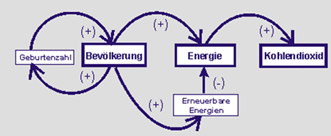 Darstellung der Wechselwirkungen von Bevölkerung, Energie und Kohlendioxid in einem |