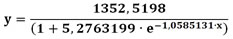 Der Rechner ermittelt nun eine logistische Funktion, die möglichst wenig von den gewählten Punkten abweicht. Hier die berechneten Funktionsparameter:
