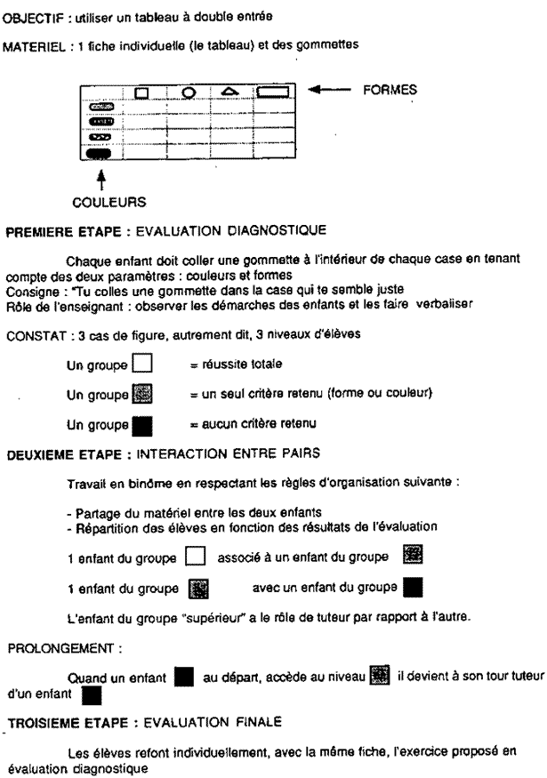 Tableau à double entrée en cycle 2