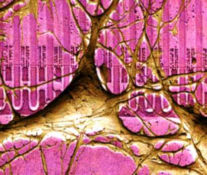 Neuron aus dem Gehirn einer Ratte, das auf einem Siliziumchip gewachsen