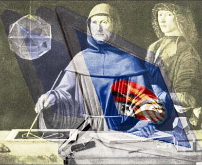 Renaissance-Bild von Bramante im Hintergrund der neuen Hyper-Technik