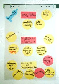 benötigen. Diesen Gruppen steht dann im Plenum Zeit zur Verfügung. < < Ergebnisse einer Gruppenarbeit aus einem Seminar mit SchulleiterInnen zur "Schulentwicklung Neue Medien" |